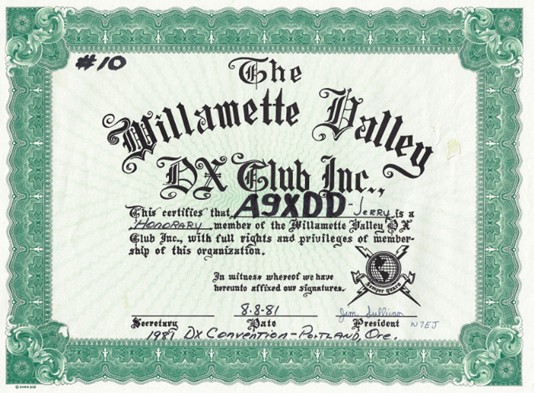The original WVDXC address of PO Box 55, Portland OR was obtained primarily so club members had a mail address to put on their cards re the Honorary Membership program. Later the USPS changed from PO Box 55 to PO Box 555.